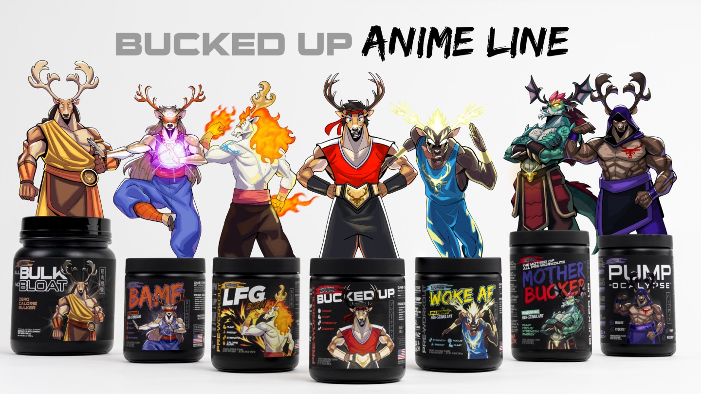 The Anime Line by Bucked Up features popular formulas including, Bucked Up, Woke AF, PUMP-ocalypse, Mother Bucker, BAMF, LFG, and All Bulk No Bloat. With the introduction of the Anime Line, Bucked Up aims to bridge its community to a wider audience, particularly those who are fans of anime culture.